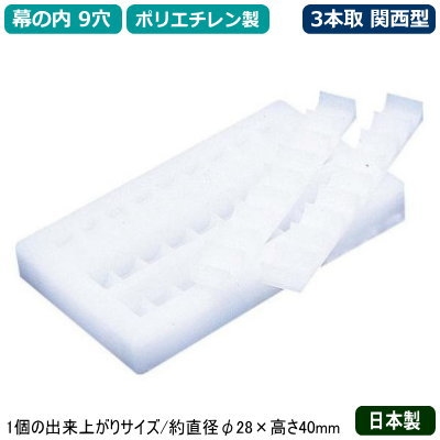 ◆【日本製】ポリエチレン製の幕の内9穴 押し型・3本取(関西型)です。