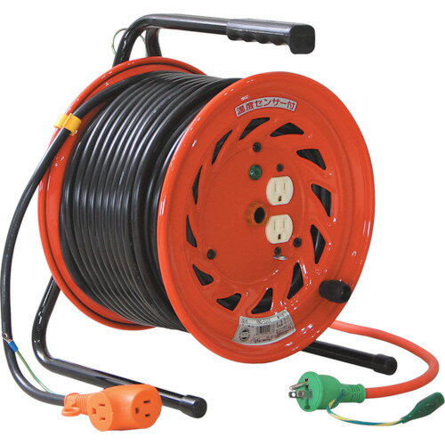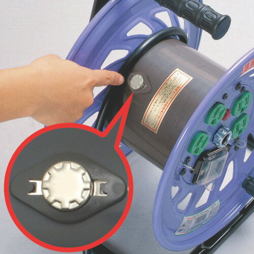 仕様:電線仕様長さ(m):50(3+47)電線仕様太さ([[MM2]]):2電線仕様芯数(C):3定格電流(A):4コンセント仕様定格:(本体)接地2P15A125V・(先端)接地2P15A125Vコンセント仕様形状:[[三芯]]コンセント仕様個数:5接地端子:○漏電保護:-過負荷保護:-電源ランプ:○ポッキンプラグ:○電線色:黒側板色:オレンジAC100Vケーブルとドラムの回転を同時に止める「ドラムストッパー」付き材質/仕上:側板:スチール(焼付け塗装)グリップ:EVA樹脂電線種:VCT2.0mm[[の2乗]]注意:屋内型です。